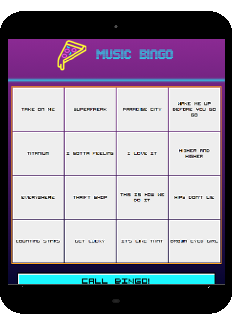 Host your own Music Bingo by creating a custom playlist of songs. Players must guess the songs played and mark off the song names on their Bingo card as they are played. Be the